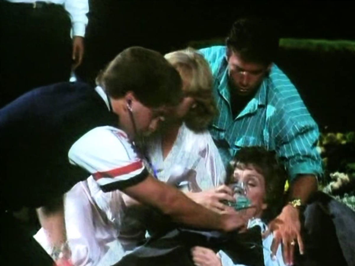When the manor house is torched, Lance saves Angela and Emma. Cassandra realizes her mother is the culprit in both fires. Because Maggie still suffers from amnesia, Chase suggests they renew their marriage vows with a second wedding. On the big day, Angela pours her own brand of vitriol on the ceremony by mentioning Chase’s relationship with Connie Giannini. As Richard’s would-be assassin tries again, he is caught. Father Christopher discovers some hard facts of life from Lance and Melissa. When Lance rescues a cocktail hostess, he learns that she is an aspiring singer and offers to help her career. Not realizing that Peter and Angela are intimately involved, Cassandra sells Falcon Crest to Peter.