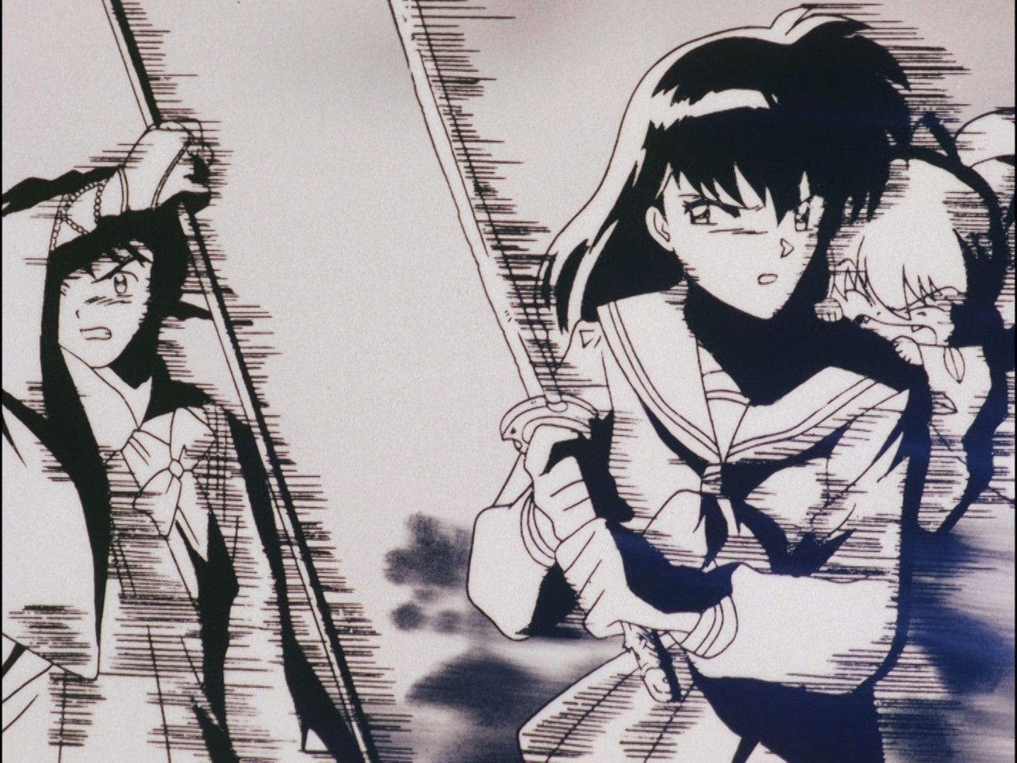 Inuyasha, once again, transforms into a demon when faced with Gatenmaru’s murderous attack against himself, Miroku, and the helpless women of a village. Sesshomaru then appears to see if what Boku’seno told him about demon Inuyasha was true.