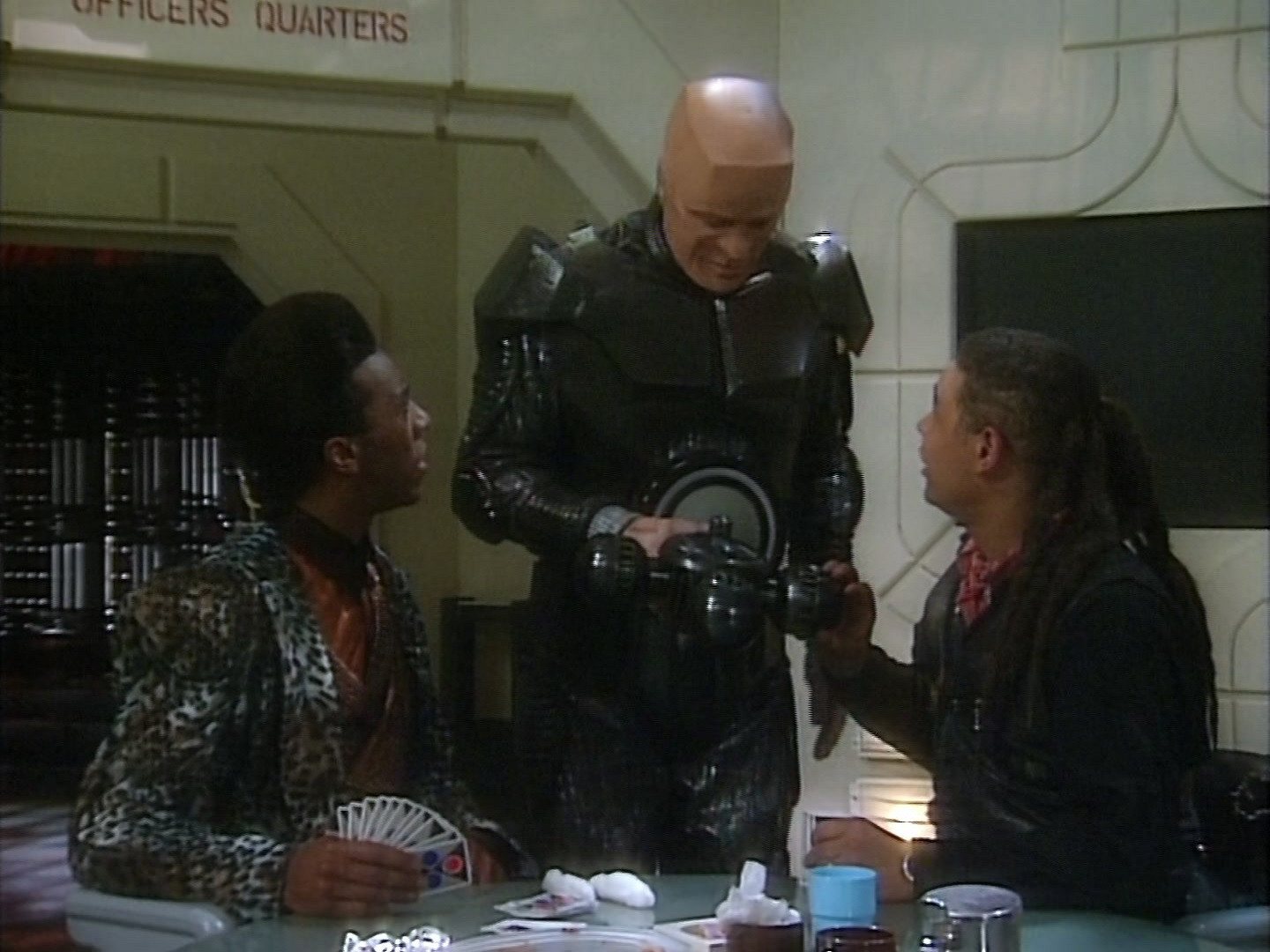 When a matter transporter sends the crew to a theme park populated by wax androids that have overridden their programming, they get ensnared in a war.