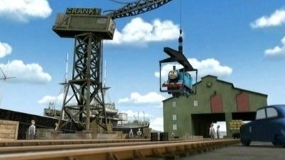 After Thomas teases him for creaking, Cranky boasts that he is stronger than the little tank engine. Thomas attempts to prove him wrong by bringing heavy loads for Cranky to lift. When that fails, he suggests that Cranky attempts to lift him, which ends in disaster.