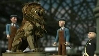 Thomas is given the job of transporting a crate containing a very special statue called The Lion of Sodor. However, he thinks his cargo is a real lion, so he decides to take extra care of it. Throughout his journey to Knapford, Thomas decides to make sure that the lion is well fed and comfortable, so he collects syrup from Henry, fish from Edward, and straw from Toby, which are all placed inside the crate. When Thomas arrives at Knapford station, the crate is opened up and everyone is shocked to see the Lion of Sodor in a terrible mess.