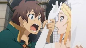 After a traffic accident, Kazuma Sato’s disappointingly brief life was supposed to be over, but he wakes up to see a beautiful girl before him. She claims to be a goddess, Aqua, and asks if he would like to go to another world and bring only one thing with him. Kazuma decides to bring the goddess herself, and they are transported to a fantasy world filled with adventure, ruled by a demon king. Now Kazuma only wants to live in peace, but Aqua wants to solve many of this world’s problems, and the demon king will only turn a blind eye for so long…